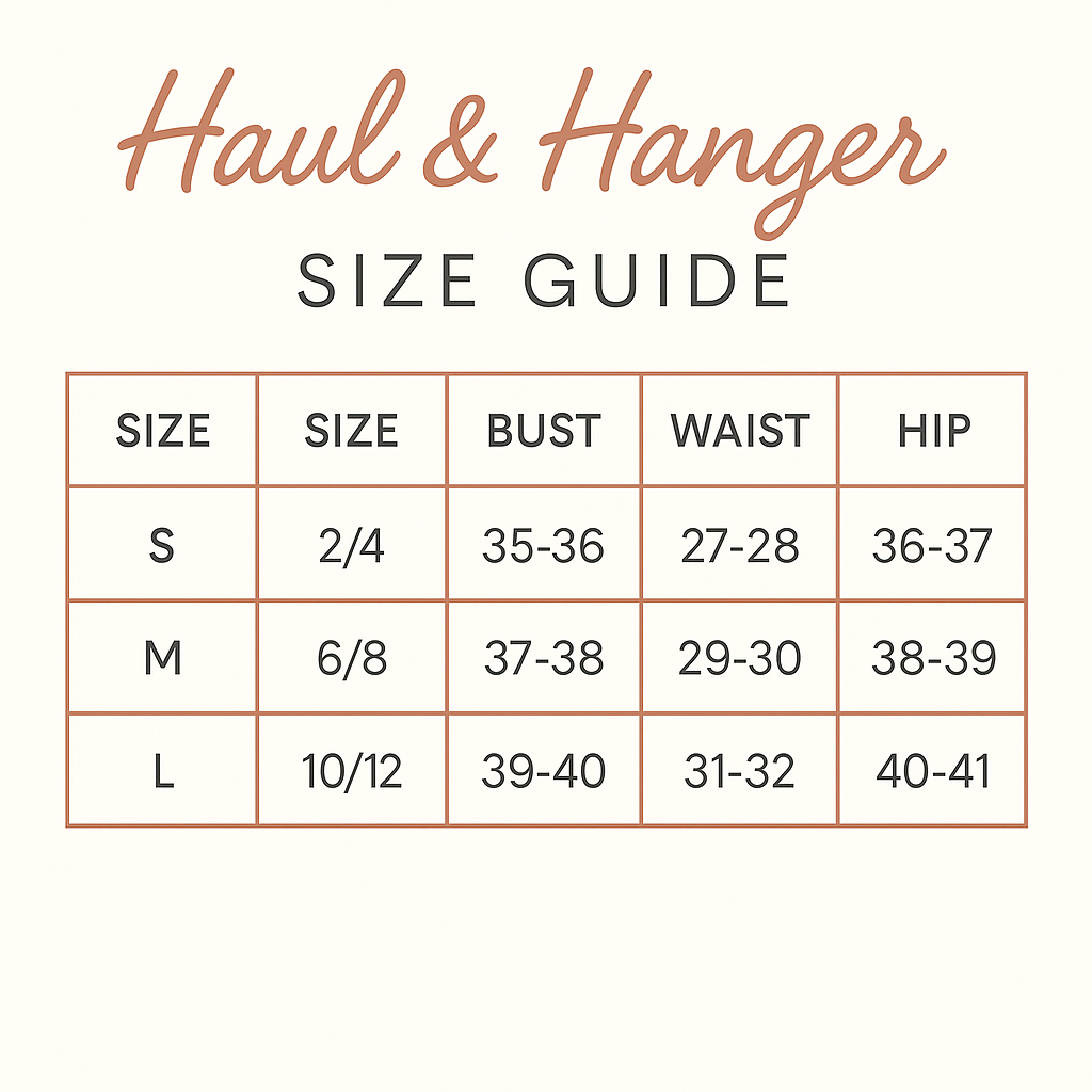 Returns & Exchanges: Email us within 3 days of receipt of item at haulandhanger@gmail.com. We offer exchanges or store credit. Items must be unworn with original tags attached. Buyer pays return shipping. Sale items are final sale.