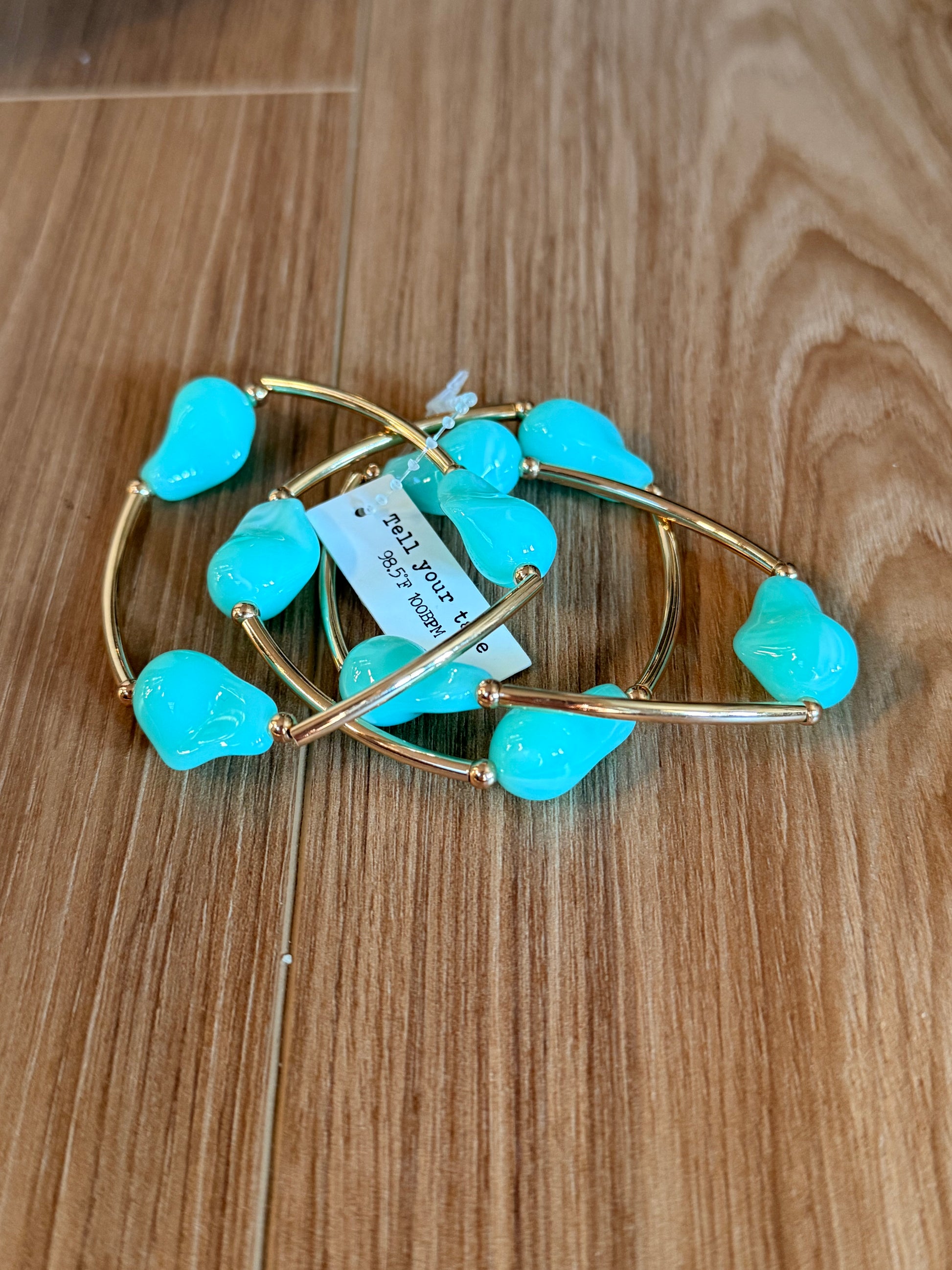 This bracelet introduces a stunning marble resin irregular beads and metallic tubes set style. Redefine your look effortlessly with this standout, on-trend piece.