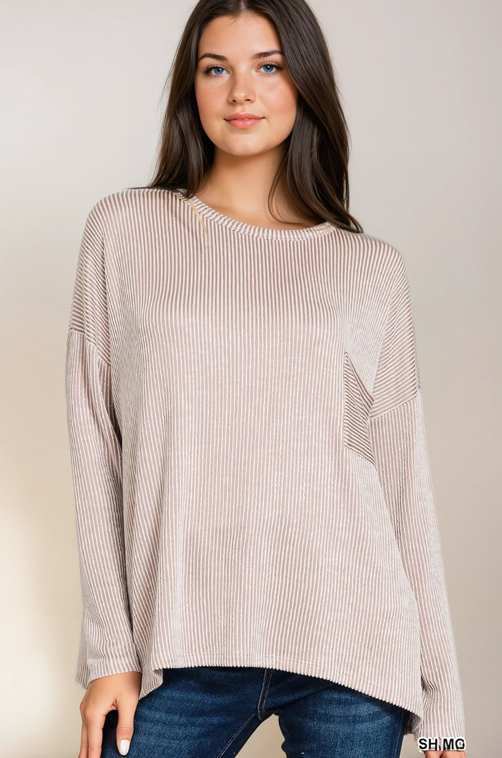 Effortlessly chic and comfy? This ribbed striped oversized long-sleeve top is your new go-to. The stretched knit fabric moves with you, while the relaxed fit keeps things breezy. Measuring 24" in total length with a 46" bust (S/M sizing), it's designed for that perfectly slouchy vibe. Note: colors may appear slightly different depending on your screen—but trust us, it's gorgeous either way.