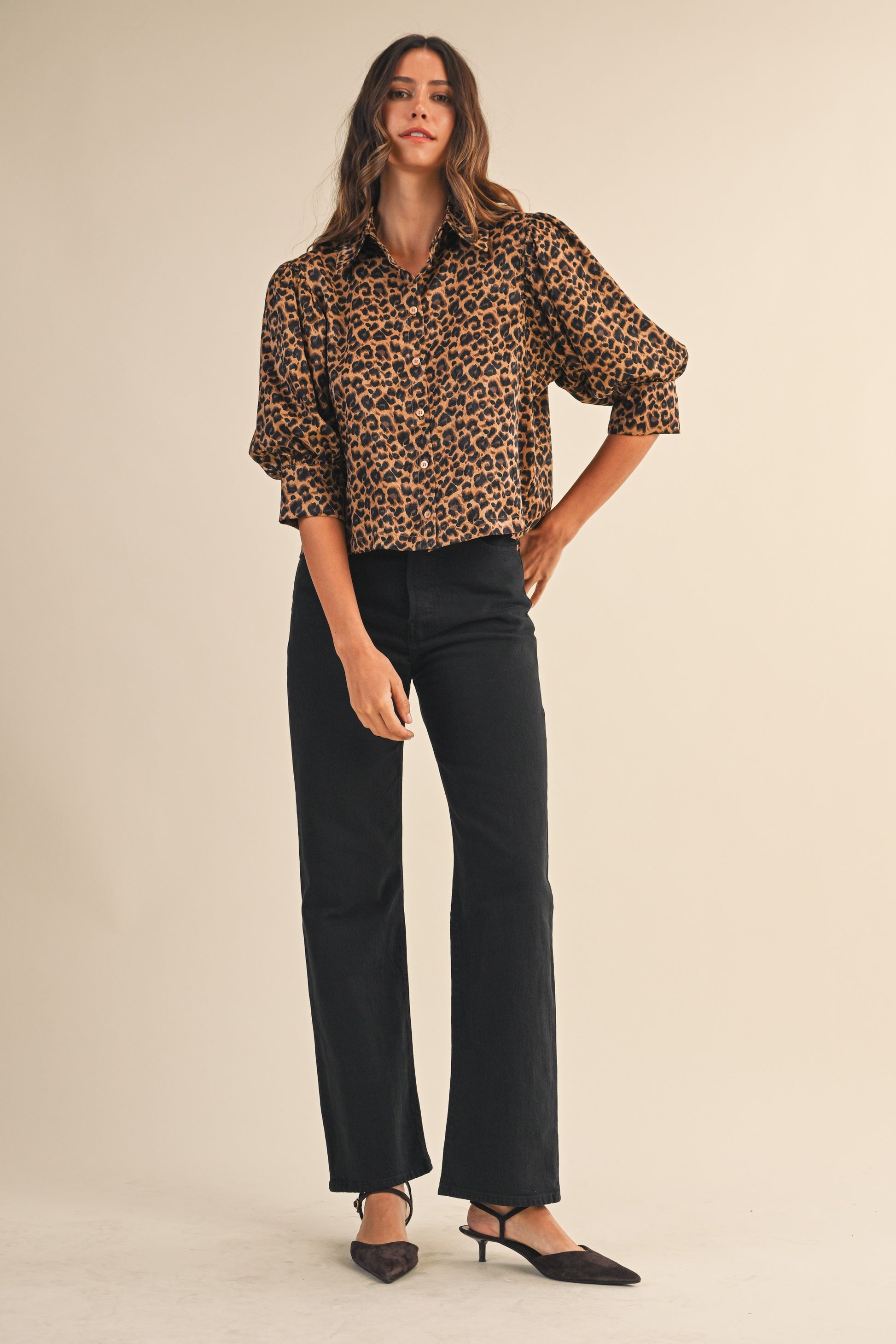Style: Leopard print blouse, casual chic top, women’s statement top